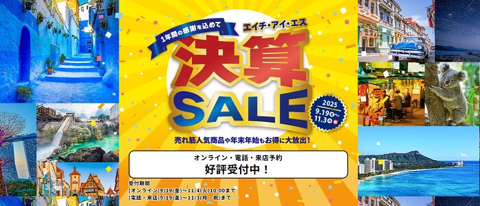 HISでは、ブラックフライデーより一足早く「決算SALE」を開催中です!