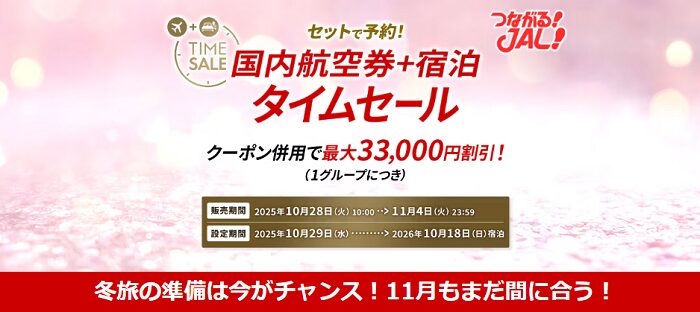 2024年は、JAL海外ダイナミックパッケージ(航空券+宿泊)がタイムセールで最大40,000円引きになるお得なキャンペーンがありました。