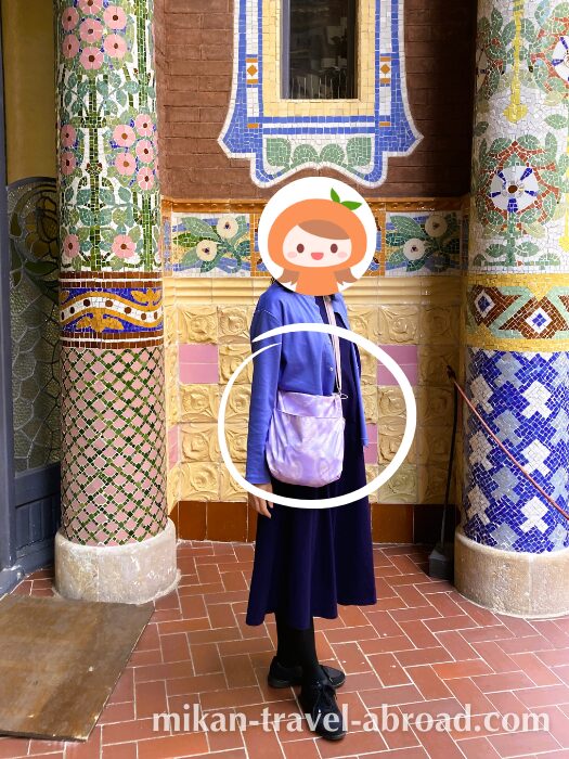 スリが心配な国では、外側ファスナーポケットが付いている面を体側に向けて斜めがけしました。