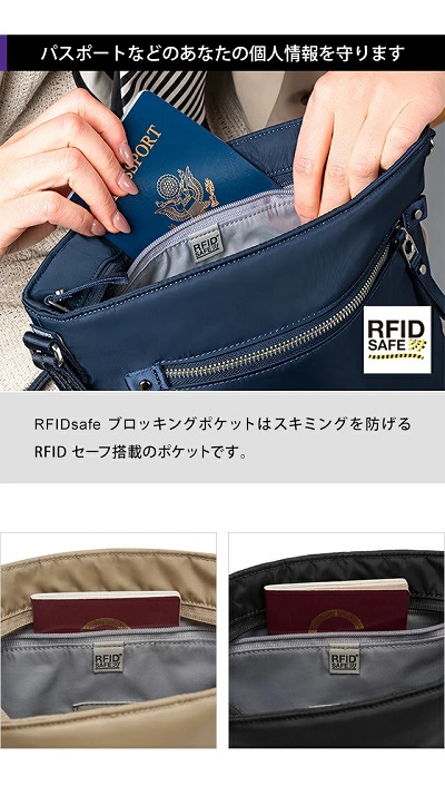 - RFIDブロッキングポケットで、クレジットカードやパスポートを不要なスキャンから保護